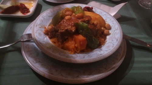 غذای سنتی تونسی: سیب زمینی آب پز بزرگ، هویج، فلفل، لوبیا و حجم عظیمی از گوشت (فکر کنم شتر بود) و "کوز کوز" (نمیگم چیه که تو کف بمونید بعدا تعریف می کنم!